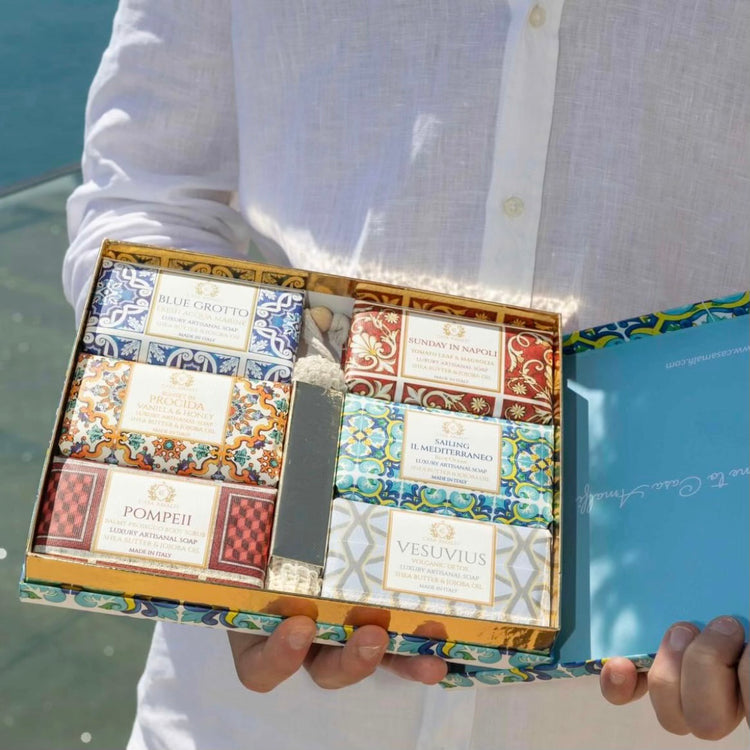 Italian luxury soap and dish collection, featuring luxury artisanal soaps and hand painted ceramic soap dishes